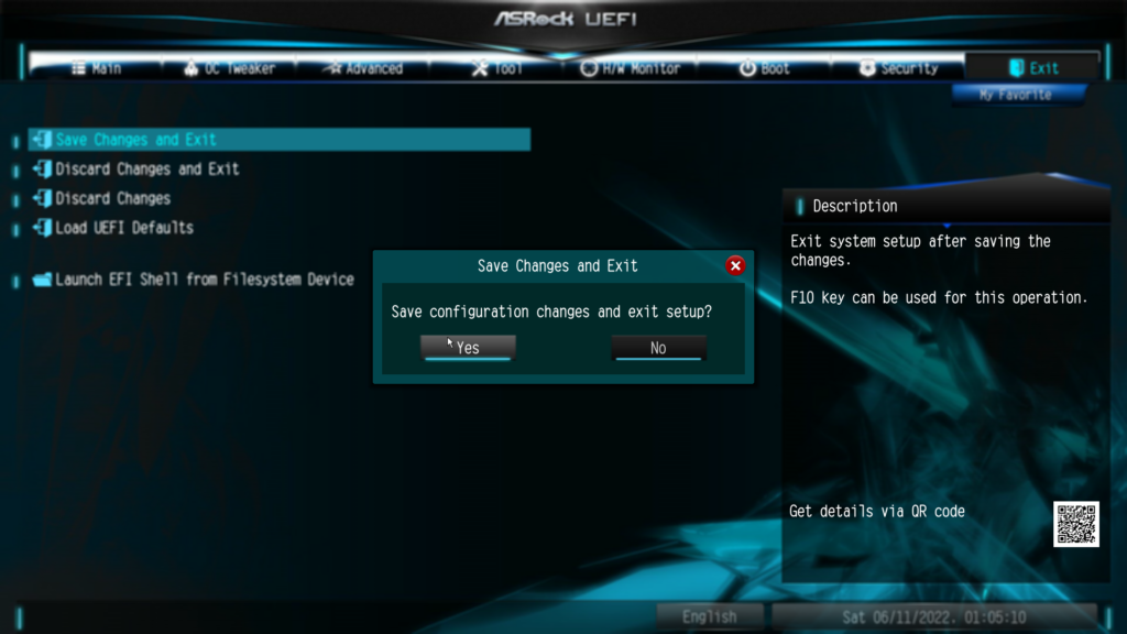 「Enabled」になっている事を確認して、メニュー右上の「Exit」を選択して「Save Changes and Exit」を選択します。